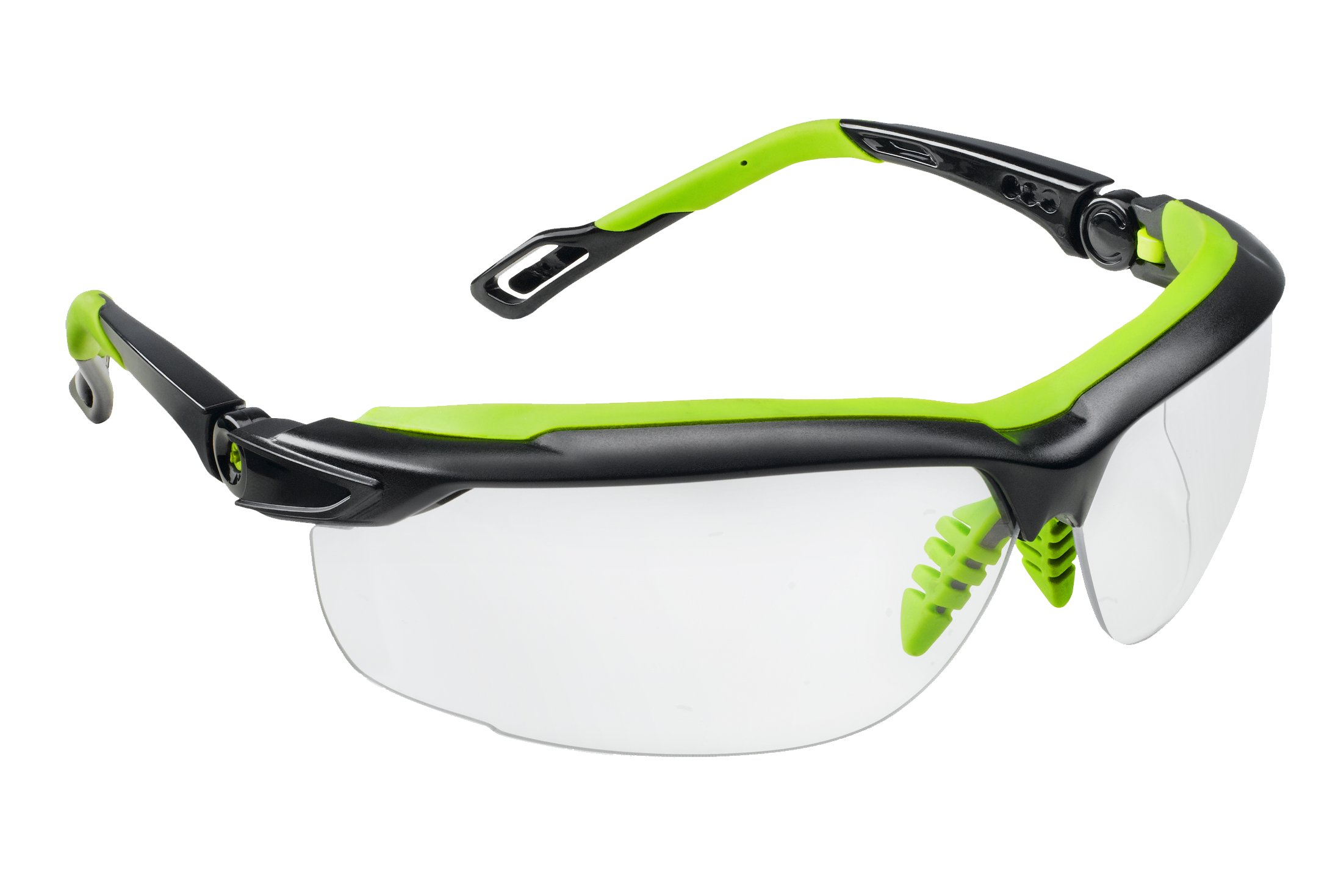 Montatura in policarbonato: FT. Lenti trasparenti resistenti agli urti, con trattamento antigraffio e antiappannante: 1 FT. Filtro lenti: EN 170 2C - 1.2. Struttura panoramica avvolgente. Stanghette regolabili in inclinazione con inserti colorati antiscivolo. Nasello e protezione frontale in morbida gomma antiscivolo. Colore: verde, nero. Conforme alla normativa EN 166:2001 - EN 170:2002.
