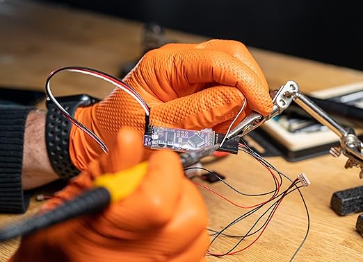 In gomma nitrilica con spessore maggiorato, ambidestro, senza polvere. La speciale finitura diamantata assicura una tenuta superlativa. Queste caratteristiche uniche lo rendono ideale per tutti i lavori per i quali è richiesta una maggiore protezione e resistenza. Latex free, preserva da possibili reazioni allergiche correlate alle proteine del lattice di gomma naturale. Con polsino salvastrappo rinforzato. Certificato per la manipolazione di farmaci antiblastici e per l'utilizzo a contatto con acido fluoridrico al 20% fino a 20 minuti. Colore arancione.