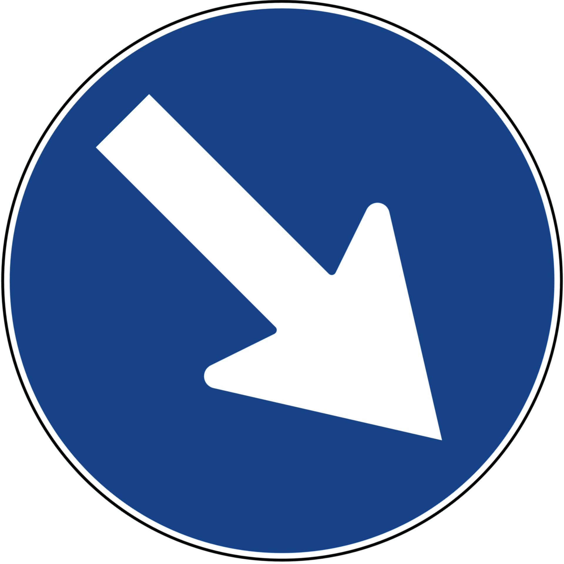 In lamiera spessore 1 mm, rifrangente di Classe 1 (7 anni). Girevole. Obbliga i conducenti a passare nel senso che indica la freccia.
