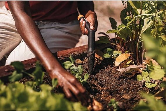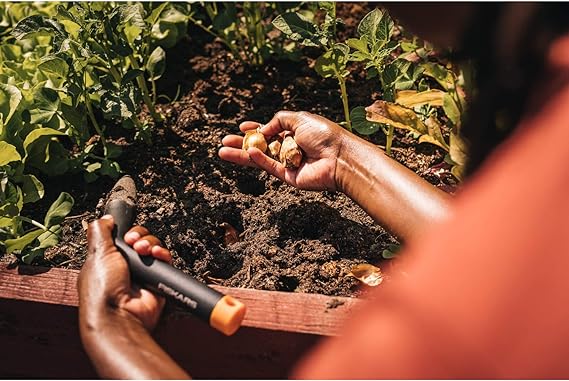 Perfetto per creare piccoli buchi e piantare semi alla giusta profondità. Misuratore sulla punta dell'utensile, profondità massima 150 mm. La forma a L dell'impugnatura aumenta la leva e la comodità. Realizzato in FiberComp, leggero, resistente e facile da pulire.