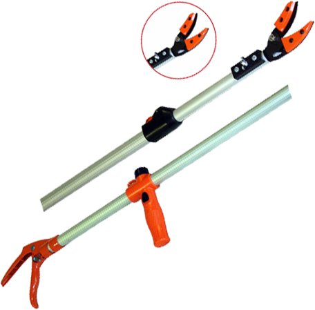 Lama in acciaio teflonata con battuta di taglio in nylon, asta in alluminio, impugnatura in materiale antiscivolo. Impugnatura ruotabile a 180°. Capacità taglio fino a 10 mm. Ideale per la raccolta di frutta e per piccole potature.