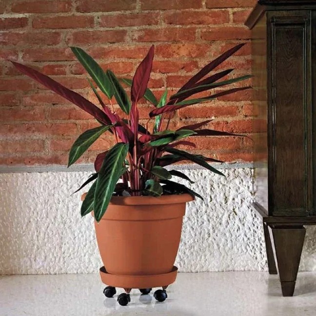 In polipropilene. Con 4 ruote gemellate girevoli. Colore terracotta.