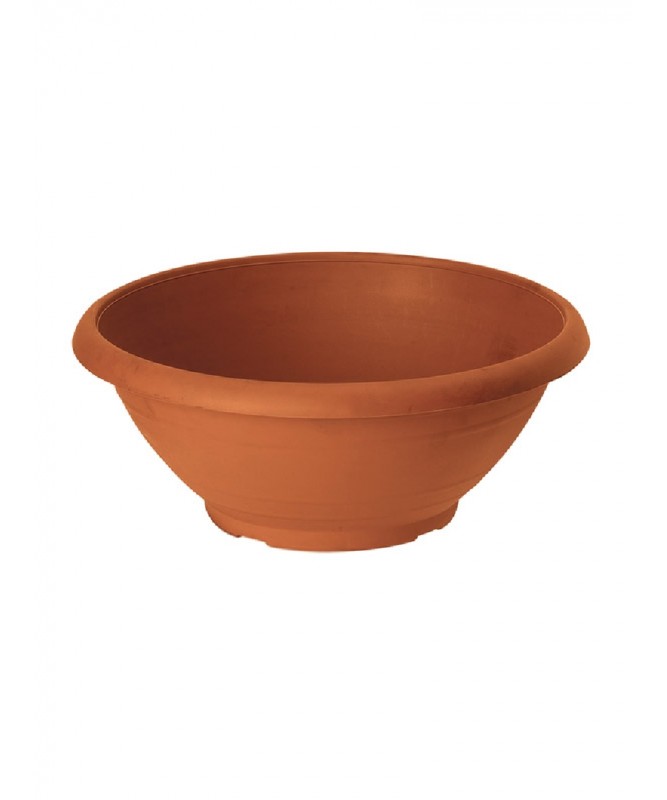 In polipropilene. Per uso esterno o interno. Ideale per fiori, gerani, piante grasse di piccola e media dimensione. Colore terracotta.