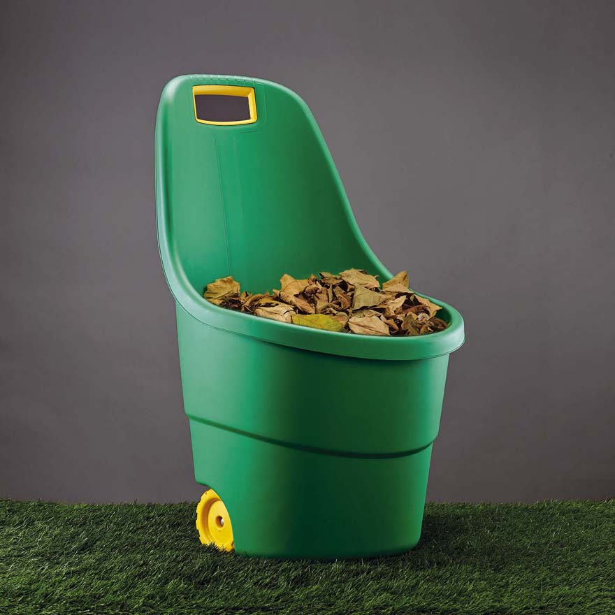 Carriola tonda multiuso in ABS con 2 ruote e pratica maniglia per una presa facile. Capacità 50lt. Peso 2,7kg.