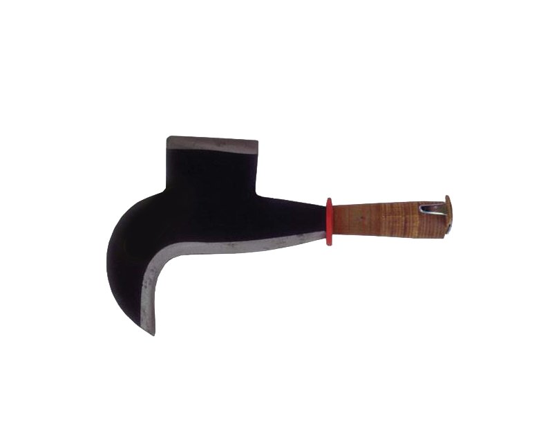 Lama in acciaio forgiato e temprato. Manico in cuoio con gancio.