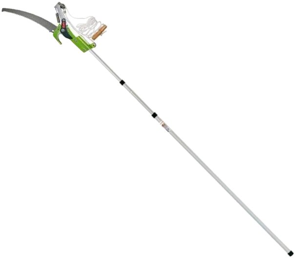 Lama e corpo in acciaio. Completo di seghetto removibile. Cordino di nylon completo di manopola. Completo di asta telescopica.