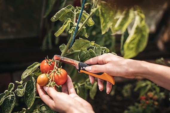 Coltello a serramanico perfetto per tagliare steli e gambi più sottili. Lama rettificata in acciaio inox con punta ricurva per facilitare il taglio anche nella vegetazione più fitta senza danneggiare le piante circostanti. Pieghevole, comodo, compatto ed ergonomico. Lunghezza della lama 7,7 cm.
