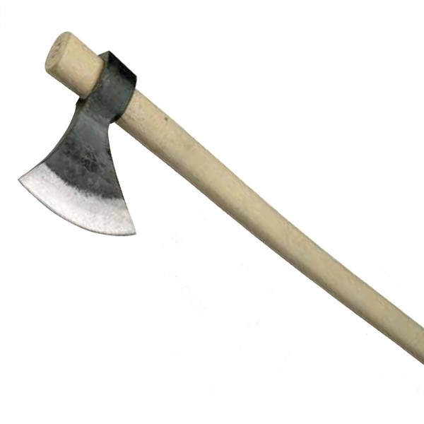 Testa in acciaio di alta qualità forgiato e temprato, lama temprata ad induzione ed affilata a mano, manico in legno.
