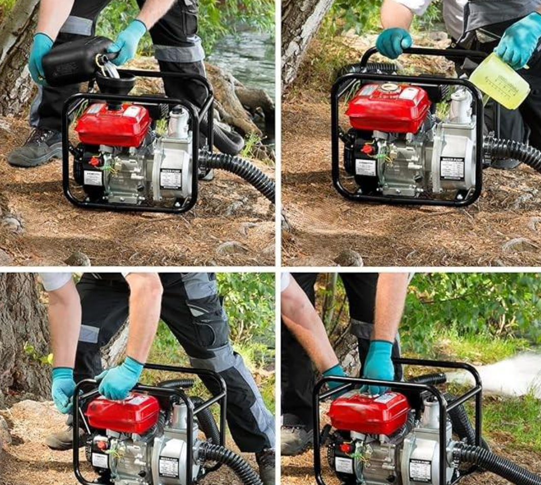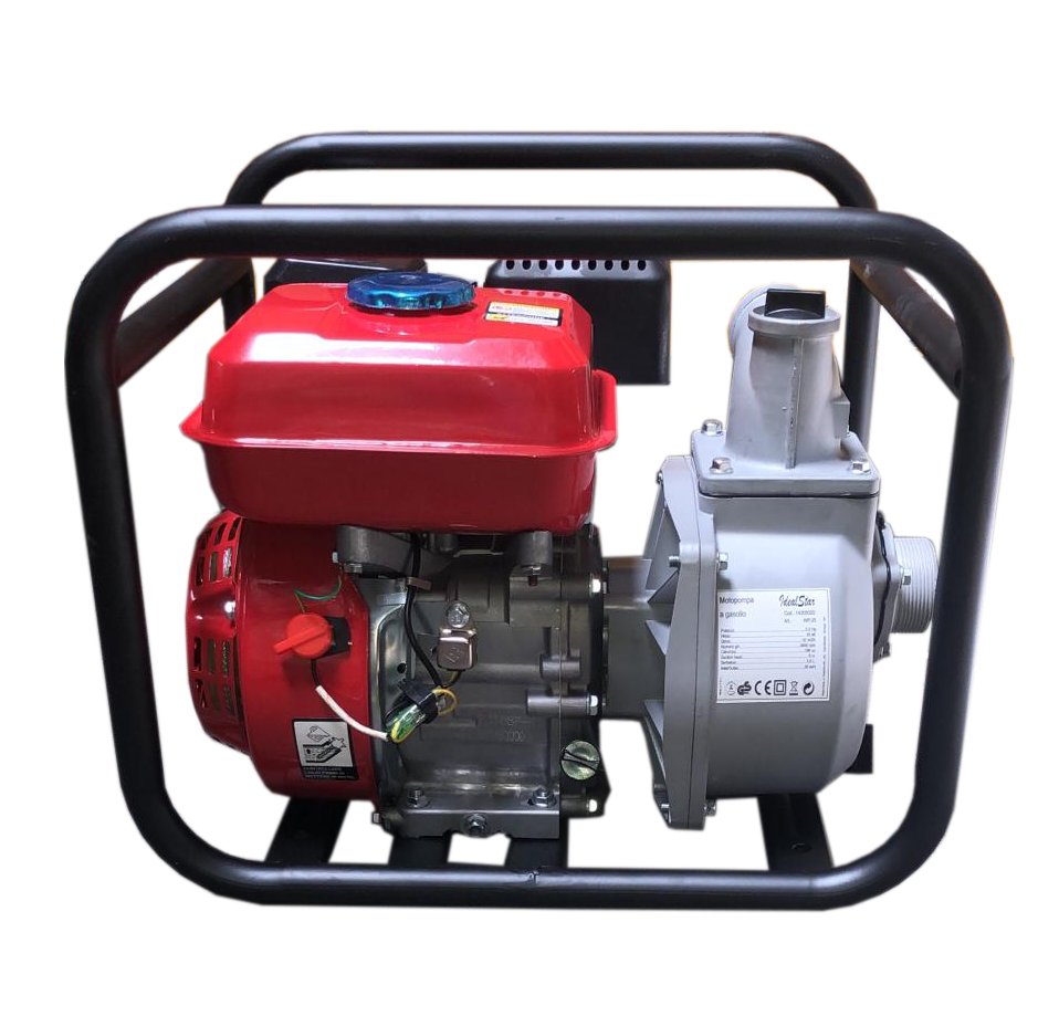 Motore 4 tempi, potenza 5,5HP, cilindrata 196cc, numero di giri: 3600 rpm al minuto. Avviamento a strappo. Raffreddamento ad aria. Portata massima: 32 m³/h. Prevalenza 30mt. Altezza max di aspirazione: 8mt. Diametro di aspirazione/scarico: 50mm. Capacità serbatoio 3,6lt. Autodescante portatile, particolarmente adatta per l'approvvigionamento e la distribuzione di acque pulite e chiare in agricoltura e in giardino dove non è disponibile un collegamento elettrico.