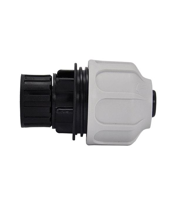 A compressione in polipropilene PN10. Portagomma per tubo DN e filettatura esterna GAS. Tubi di diametro e spessore diversi vengono bloccati con semplicità in completa sicurezza grazie ad una particolare guarnizione interna che si modella perfettamente a tutti i tipi di tubo: liscio, retinato, spiralato in PVC, spiralato in PU, con spirale in acciaio e in gomma termoplastica.