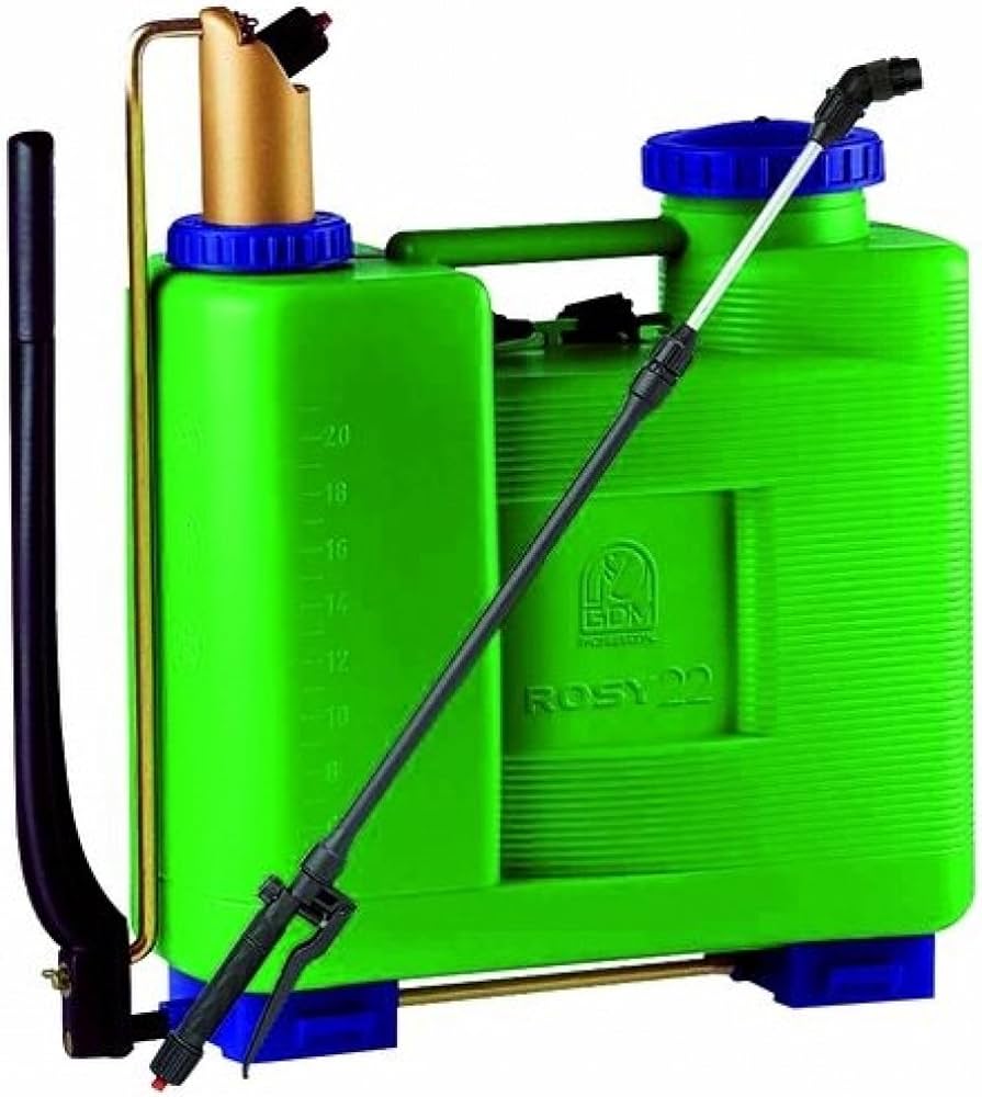 A pressione con azionamento manuale. Serbatoio in materiale plastico, pompante in ottone. Ambidestra, totalmente ermetica con agitatore dei liquidi. Fornita completa di: lancia in plastica cm.65 con regolatore di pressione, tubo a tre strati cm.120, getti vari regolabili con curva, spallacci con cinghia regolabile e sgancio rapido. E' utilizzabile in giardino per l'irrorazione di antiparassitari, anticrittogamici, pesticidi, nel trattamento delle piante o in qualsiasi altro lavoro dove serve applicare un prodotto nebulizzato.