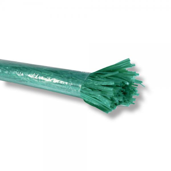 In polipropilene. Indicata per l'utilizzo nei settori: agricolo (per legatura di fiori, piantine, ortaggi, rampicanti, ecc.), imballaggio (per esempio la chiusura di sacchetti) e decorazione.