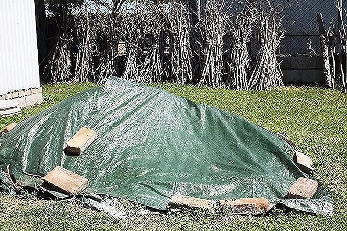 In polietilene. Multiuso ed impermeabile, ideale per coperture, stoccaggio, edilizia, ecc. Bordo rinforzato con corda in PE, rinforzo ai quattro angoli, dotato di occhielli metallici ad ogni metro. Peso 80 gr/mq. Colore verde oliva/blu royal.