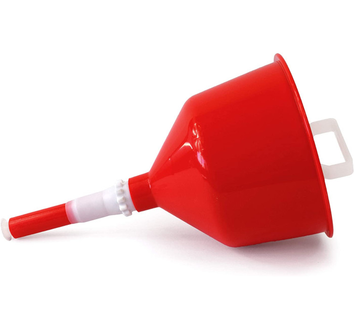 In plastica alimentare. Per travasare vino, birra e altre bevande in modo pratico e pulito. Grazie al pratico sistema di autoregolazione, al riempimento della bottiglia, l'imbuto automatico blocca automaticamente il flusso del liquido.