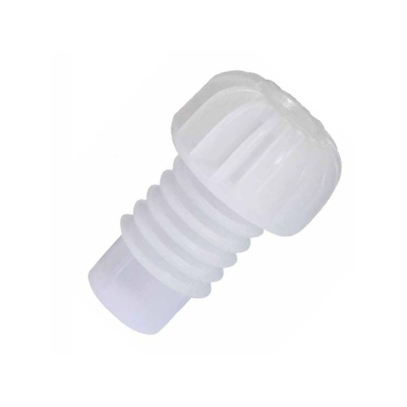 Gambo alettato e testa rigata. In plastica alimentare. Indicato per l'imbottigliamento di vini fermi e frizzanti con l'ausilio della gabbietta.