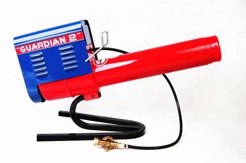 Funzionamento a gas di propano o butano. Accensione piezoelettrica. Tutte le parti principali sono trattare contro agenti atmosferici. Potenza fino a 120 decibel. Protegge un'area di un ettaro. Intensità di detonazione variabile tramite il rientrante telescopico (retrattile). Non danneggia nessun animale e mantiene l'equilibrio ecologico. Le detonazioni sono regolabili, come frequenza, da 3 minuti a mezz'ora tramite il regolatore di pressione (afflusso di gas).