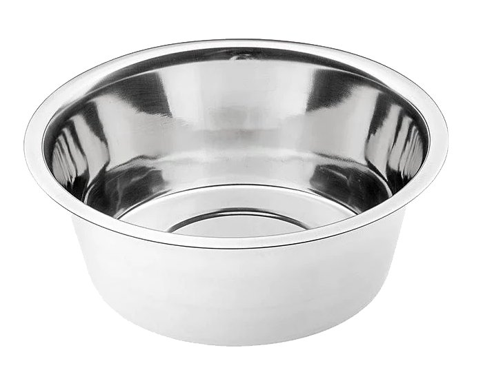 In acciaio inox. Ideale per contenere cibo, secco o umido, o acqua. Sono igieniche e resistenti, possono essere facilmente maneggiate grazie al bordo esterno.