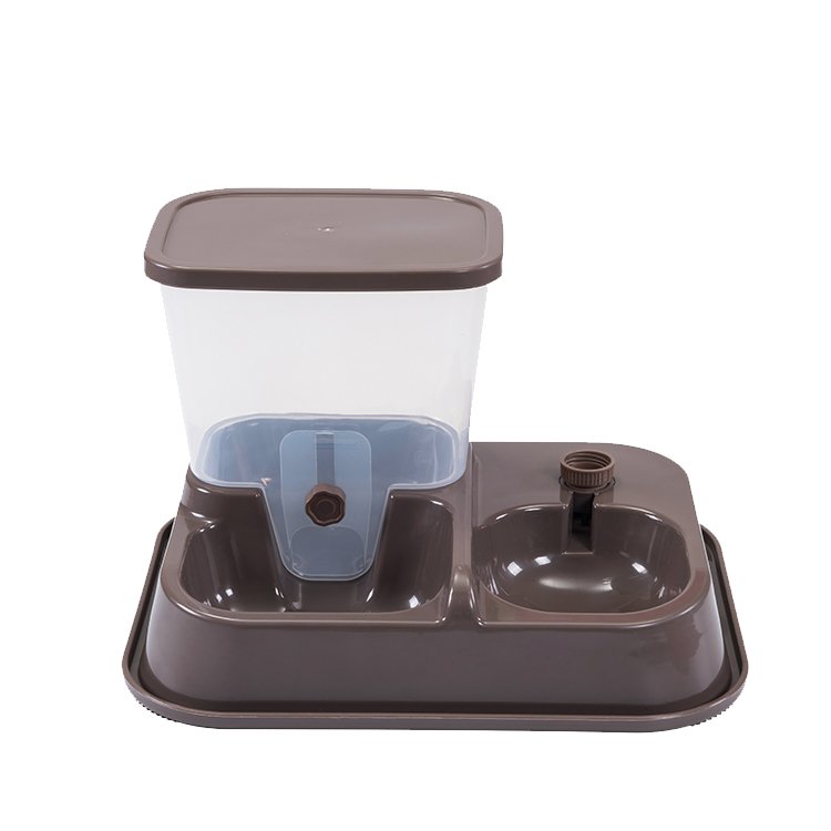 Distributore automatico cibo e acqua 2in1. Combina l'erogazione di acqua e cibo regolando il giusto dosaggio delle crocchette e la presenza costante di acqua fresca.