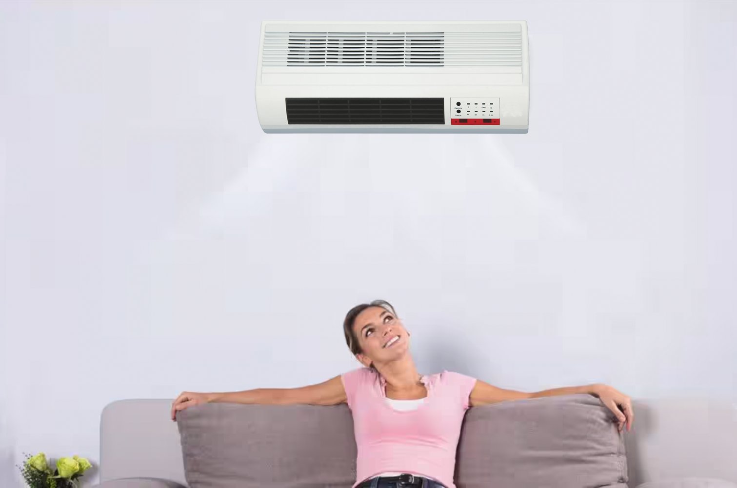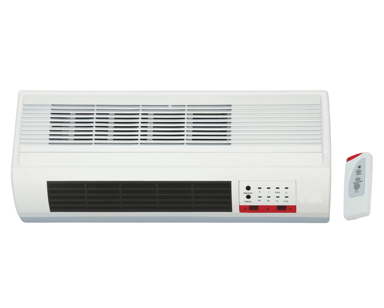 Tensione 220V/50Hz. Elementi riscaldanti in ceramica, 2 livelli di riscaldamento, protezione termica automatica e regolabile, protezione contro il surriscaldamento. Selezione flusso d'aria: fresco/tiepido/caldo. Controllo manuale o tramite telecomando.