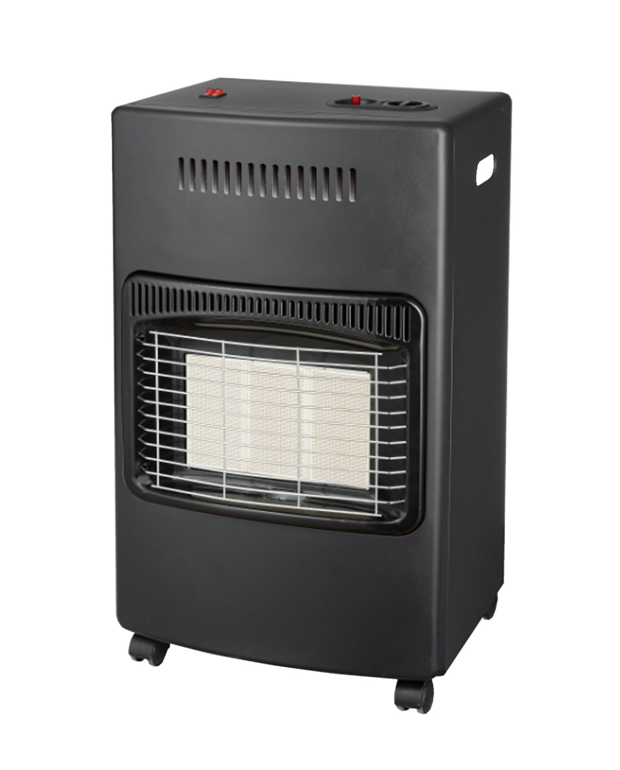 Alimentazione a gas GPL. Pannello radiante a 3 elementi ceramici. 3 livelli di riscaldamento. Accensione piezoelettrica. Dispositivo antiribaltamento. Capacità bombola del gas finmo a 15kg. Consumo gas(g/h): 110(min), 210(med), 305(max). Uscita del gas(Kw): 1,5(min), 2,8(med), 4,2(max). Riscaldamento: 20-100 Mq. Pressione di esercizio(mbar): 30/37/50. Velocità ventola: 0,75/1,5W. 4 ruote piroettanti per un facile spostamento. Dimensione: mm 420x352x730h.