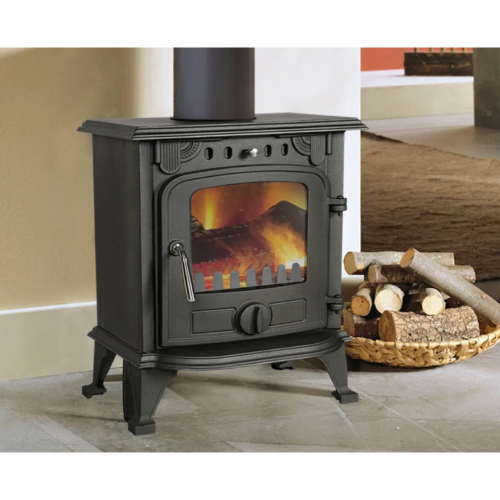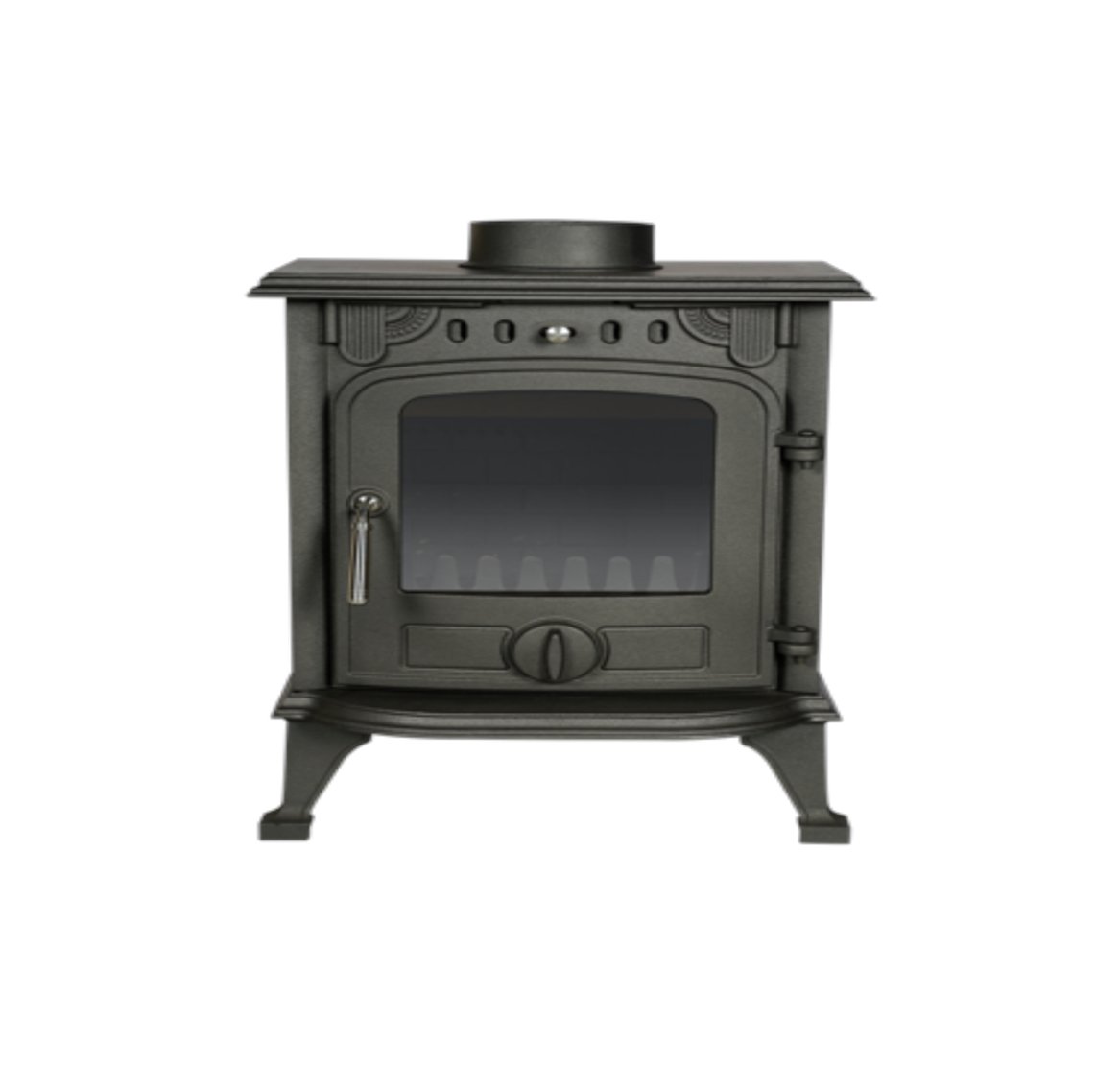 Stufa in ghisa colore nero. Potenza termica nominale: 5.1kw. Volume riscaldabile 140 m3. Porta di carico frontale. Uscita fumi superiore e/o posteriore M diam.130. Peso 60 kg. Vetro e vernice resistente alle alte temperature. BS EN 13240:2001 + Amd 2:2004.