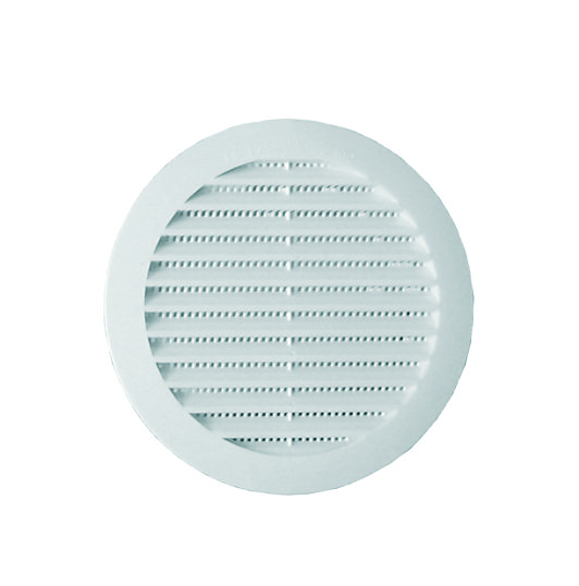 Da incasso. In polistirolo antiurto con rete anti insetti stampata. Colore bianco.