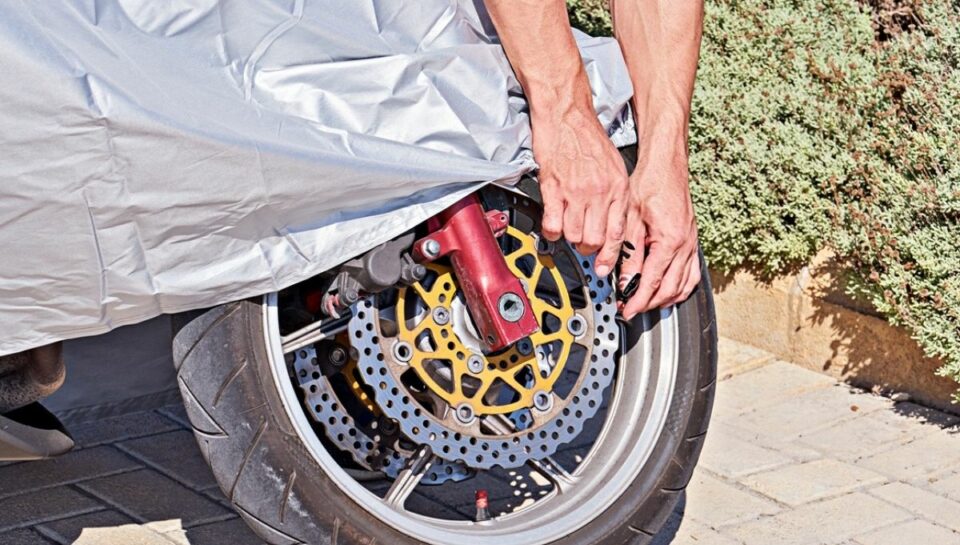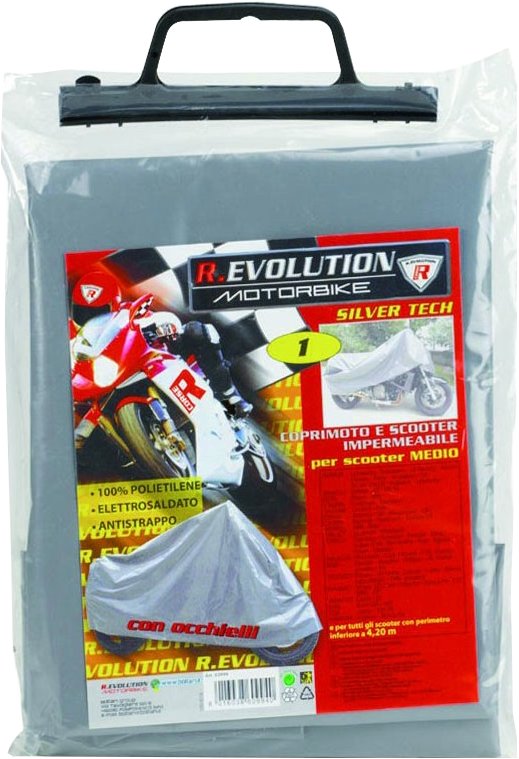 Telo Coprimoto impermeabile e antistrappo in polietilene. Protegge la moto dagli agenti atmosferici, resina, macchie volatili, polveri industriali, sabbia, sale, ecc.