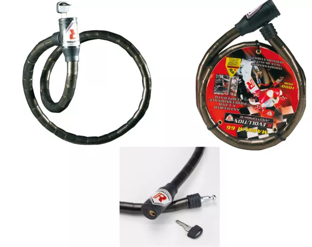 Cavo antifurto con serratura a chiave. Diametro 18mm, lunghezza 1000mm.
