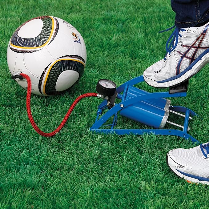 Struttura e corpo in acciaio. Con manometro. In dotazione adattatori per gonfiare palloni, materassini, ruote di bici ed auto.
