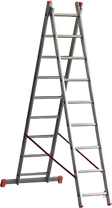 Professionale, trasformabile sia in scala d'appoggio che doppia. Montante in alluminio elettrosaldato con profilo montante esterno grecato per una presa sicura, piolo a sezione quadrata mm.28x28 in alluminio estruso antisdrucciolo, cerniera in acciaio con agevolatore di apertura, cinghie antiapertura, base allargata per una maggiore stabilità con tacchi ergonomici maggiorati, chiavette e bulloneria per montaggio in dotazione. Portata kg 150. Conforme alle norme UNI EN 131.