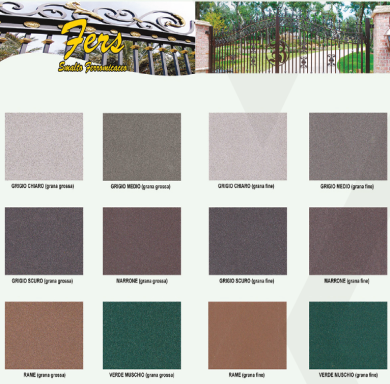 A base di resine alchidiche modificate, ossido di ferro micaceo, fosfato di zinco e alluminio lamellare. Ripropone l'aspetto antico del ferro battuto su superfici ferrose di manufatti interni ed esterni. La particolare formulazione permette di aderire perfettamente e tenacemente anche direttamente su supporti zincati.