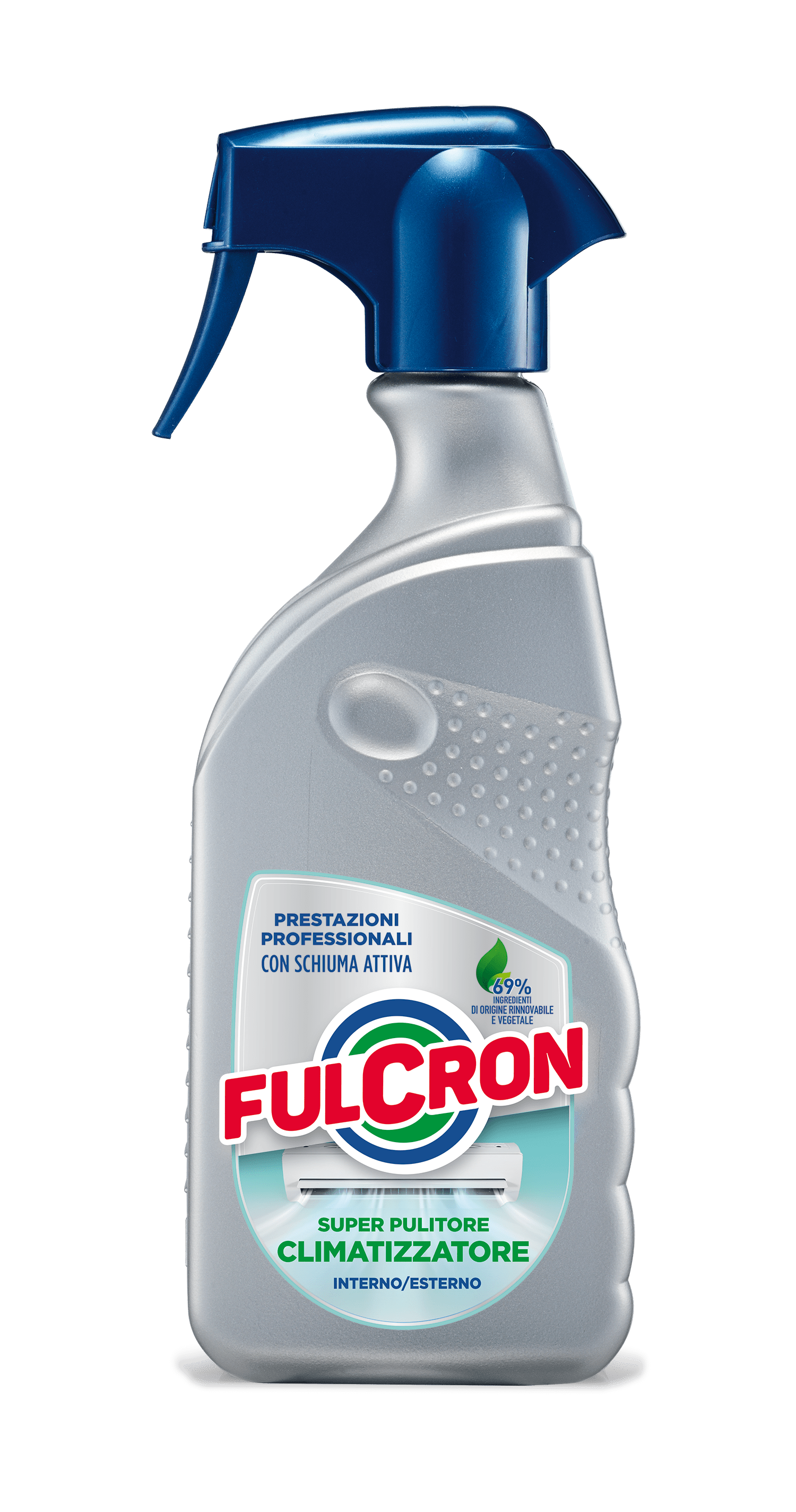 Super pulitore interno/esterno con schiuma attiva. Specifico per la detersione di unità interne ed esterne di climatizzatori in ambienti domestici e professionali. Scioglie lo sporco che si deposita sulle unità esterne come smog, fango, moscerini, guano ecc. che se accumulato diminuisce notevolmente l’efficienza energetica poiché riduce lo scambio termico. Per le unità interne è indispensabile per eliminare la polvere e sporcizia da parti interne e filtri, assicurandone un elevato grado di salubrità. La formula con schiuma attiva, penetra a fondo e permette applicazioni anche in verticale. Necessario in estate e in inverno quando gli impianti sono impostati in modalità pompa di calore. Idoneo nei piani HACCP.