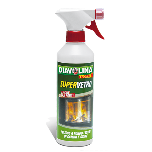Detergente specifico per i vetri di camini e stufe. Pulisce a fondo i residui di fuliggine nera che si deposita sulle superfici e restituisce la brillantezza originale ai vetri di camini e stufe.