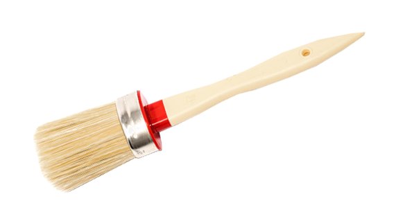 Setola bionda, manico in plastica. Per applicazione di smalti e vernici a solvente, pitture murali ad acqua.