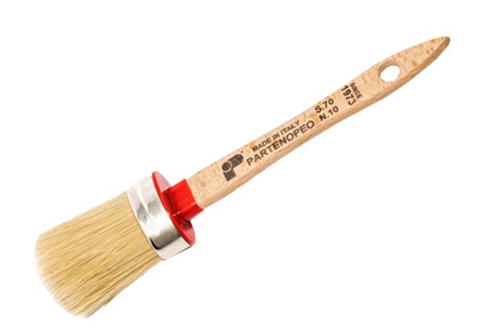 Setola bionda, manico legno verniciato. Per applicazione di smalti e vernici a solvente, pitture murali ad acqua.