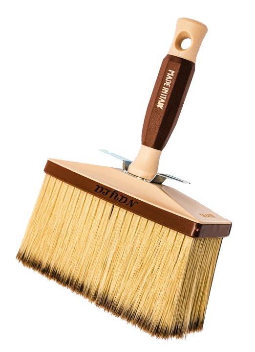 Setola a ciuffetti imitazione brown antigoccia. Plafone ottimo per quarzi, silicati e silossani all'esterno e con traspiranti o lavabili all'interno. Questo filato è una vera innovazione e conferisce al pennello una morbidezza eccezionale e una durata lunghissima. Non lascia rigature e profila con la massima precisione.