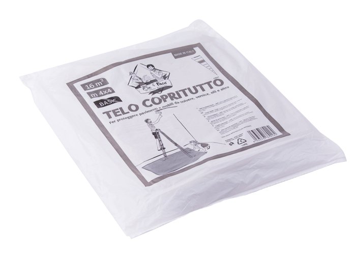 In polietilene a bassa densità. Peso 730 g, colore trasparente. Indicato per proteggere pavimenti e mobili da polvere, vernici, olii e altro.