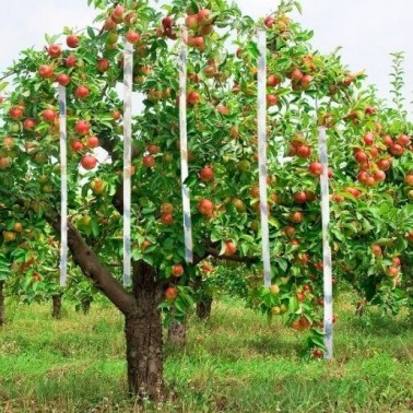 Bimetallico. Grazie ai suoi riflessi luminosi e agli effetti sonori prodotti dal movimento disturba la presenza e lo stazionamento dei volatili.