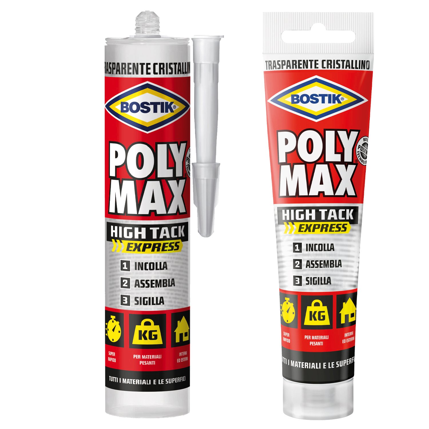 Adesivo di montaggio e sigillante universale 100% trasparente e cristallino basato sull’esclusiva tecnologia Bostik Polymer, super rapido e con un’eccezionale tenuta finale. Costruzione ultrarapida della forza di adesione finale. Perfetto per incollare, assemblare e sigillare quasi tutti i materiali su ogni genere di superficie (liscia o ruvida, porosa o non porosa), anche umida. Eccezionale presa iniziale grazie all’effetto ventosa. Ideale per applicazioni in verticale e di oggetti pesanti. Perfetto per applicazioni invisibili, su qualsiasi superficie. Prestazioni garantite dall’ente di certificazione TÜV.