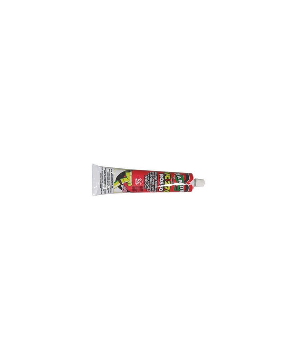 Colore rosso. Adesivo sigillante rosso, semidenso, a base di resine in PVC in solvente. Il collante, una volta solidificato, resiste ottimamente all'azione di olii, grassi e acidi. Viene indicato per incollaggi di giunzioni di tubi e connessioni in PVC rigido di colorazione arancio e di tubazioni di scarico in PVC rigido (non in pressione) anche di grossi diametri e dove passa acqua calda.