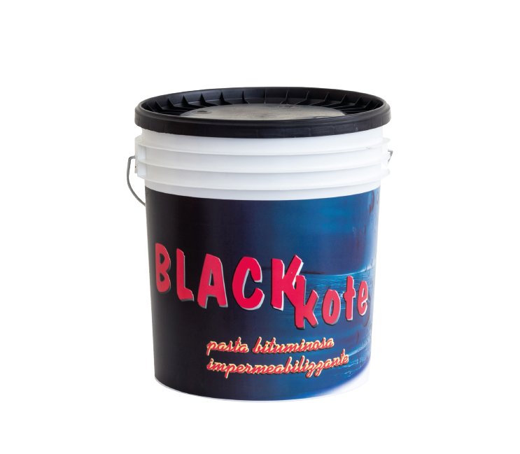 BLACKKOTE è una pasta bituminosa impermeabilizzante, prodotta dall'acqua, che si presta ad una moltitudine di usi. Viene utilizzata per rivestire ed impermeabilizzare: pareti, coperture, barriere al vapore, vasche e serbatoi (non destinati a contenere acqua potabile). Indicata anche per verniciature protettive per murature da interrare e per la verniciatura anti-umida di pareti esterne. E' miscelabile in tutte le proporzioni con acqua, sabbia e cemento. SUPPORTI: Qualsiasi tipo di supporto. CONSUMO: 0,5÷1 Kg/m² in due stese. ATTREZZATURA: airless, pennello, rullo, spatola.