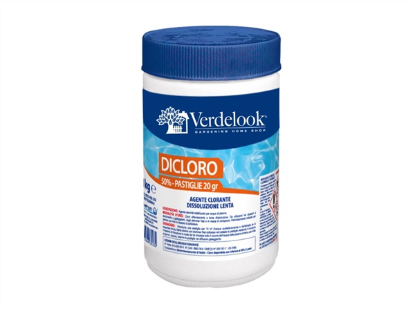 E' un agente clorante stabilizzato per acque di piscina. Modalità d'uso: Il Dicloro Marten è cloro effervescente a lenta dissoluzione. Da utilizzarsi nei dosatori a lambimento o galleggianti, negli skimmer fissi o in vasca di compenso. Particolarmente indicato per piscine con liner in tessuto di poliestere. Dosaggio: Introdurre una pastiglia di Dicloro da 20 gr per 10 m3 d'acqua quotidianamente e ripristinarla se si esaurisce prima. Nelle piscine con skimmer fissi collocare nel cestello le pastiglie di Dicloro mettendo in funzione l'impianto di filtrazione in modo da far circolare tutto il volume dell'acqua della piscina almeno una volta al giorno, oppure, inserire le pastiglie nel diffusore galleggiante.