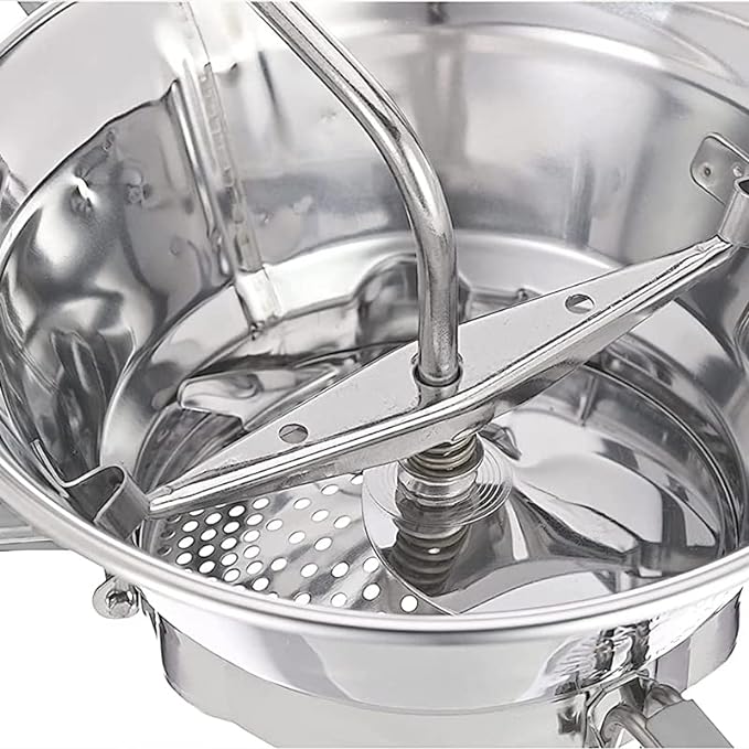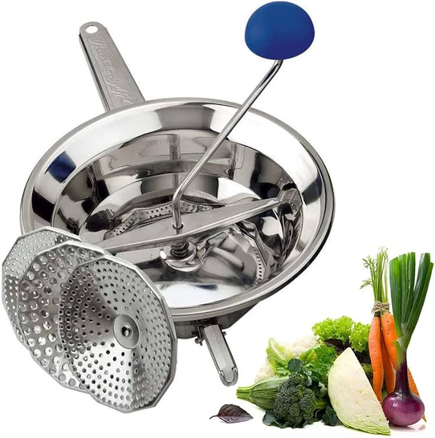 In acciaio inox 18/10 con tre piedini pieghevoli. In dotazione tre filtri intercambiabili a foratura differenziata.