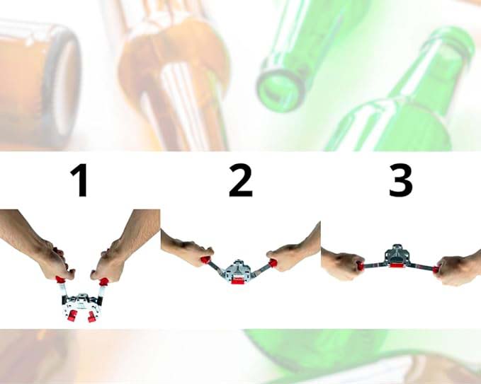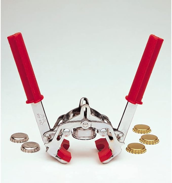 In acciaio zinco cromato con ganasce in poliammide. Permette di sigillare ermeticamente bottiglie di varie misure con tappi a corona di Ø mm 26,5.