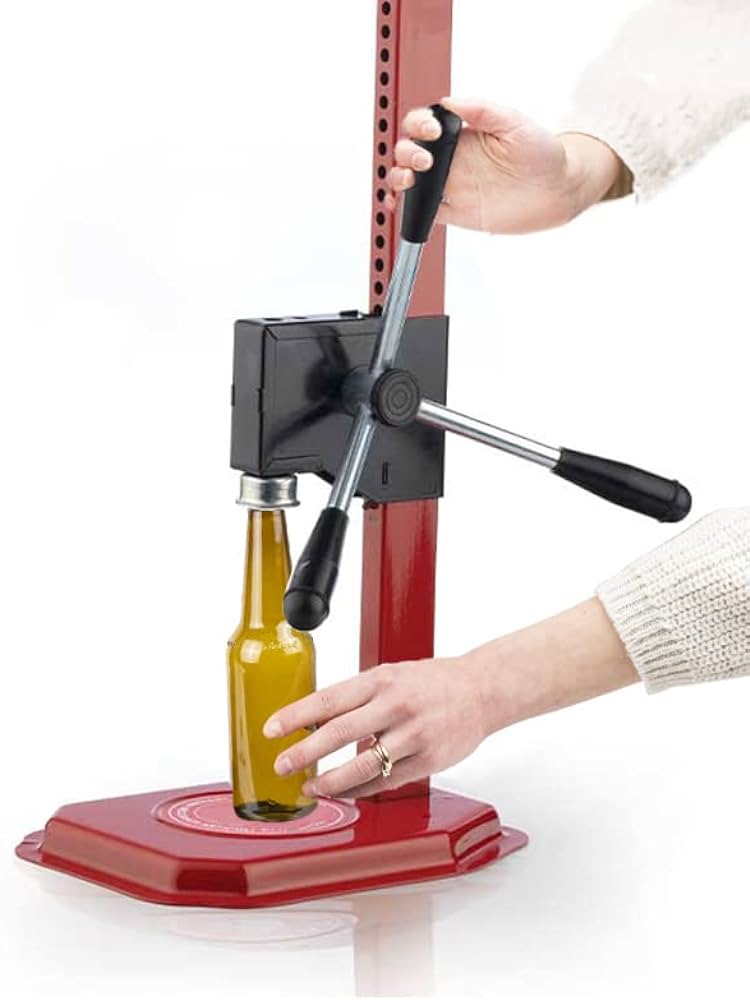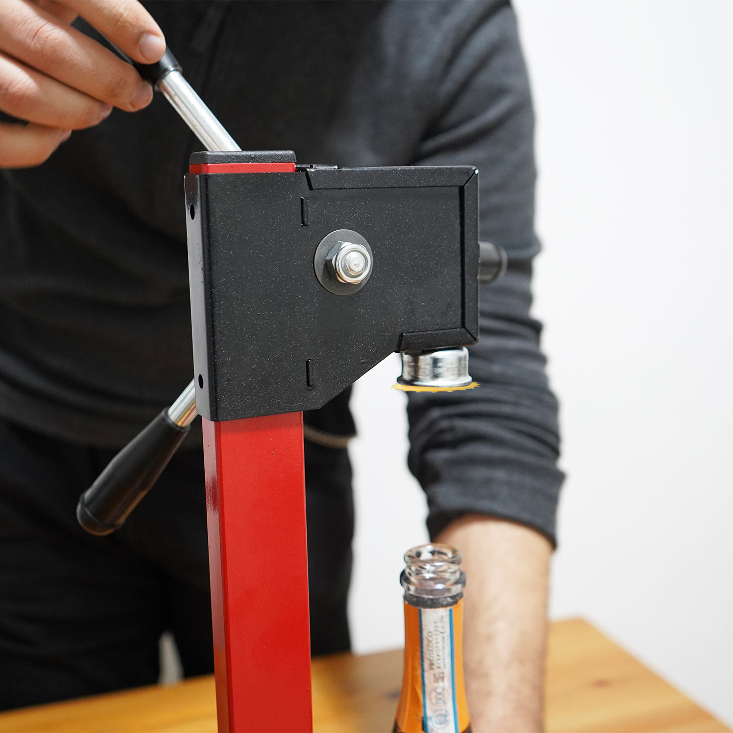 Tappatrice in ferro verniciato per tappi a corona con regolazione di altezza rapida. Per tappare bottiglie con tappi a corona di Ø mm. 26.