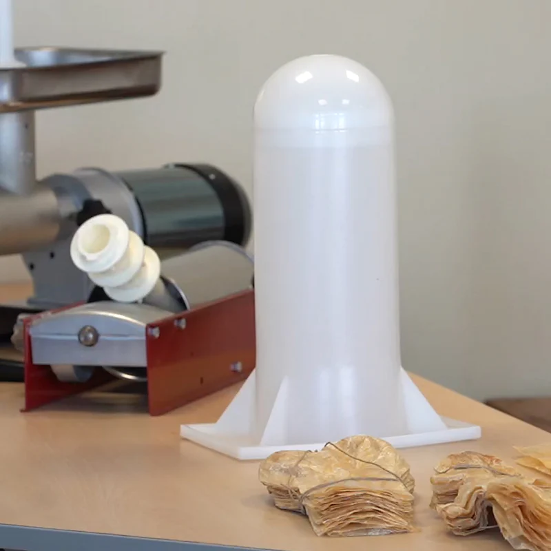In polipropilene atossico per uso alimentare. Completo di ogiva che ne facilita il caricamento della rete.