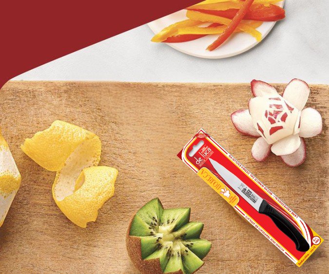 Lama in acciaio inox temperato, spessore 1,5 mm. Manico ergonomico in polipropilene antiscivolo.