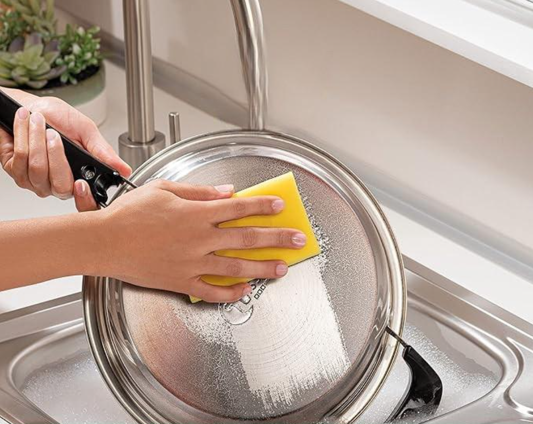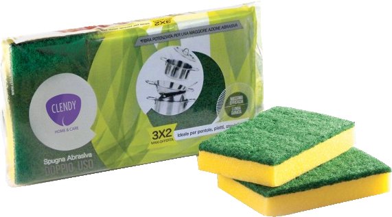 Spugna abrasiva a doppio uso. Fibra potenziata per una maggiore azione abrasiva. Massima efficacia. Lunga durata. Ideale per pentole, piatti, stoviglie.