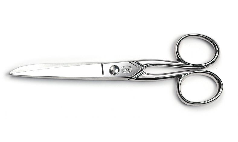 In acciaio nichelato. Adatte a tagliare fili, tessuti leggeri e materiali diversi.