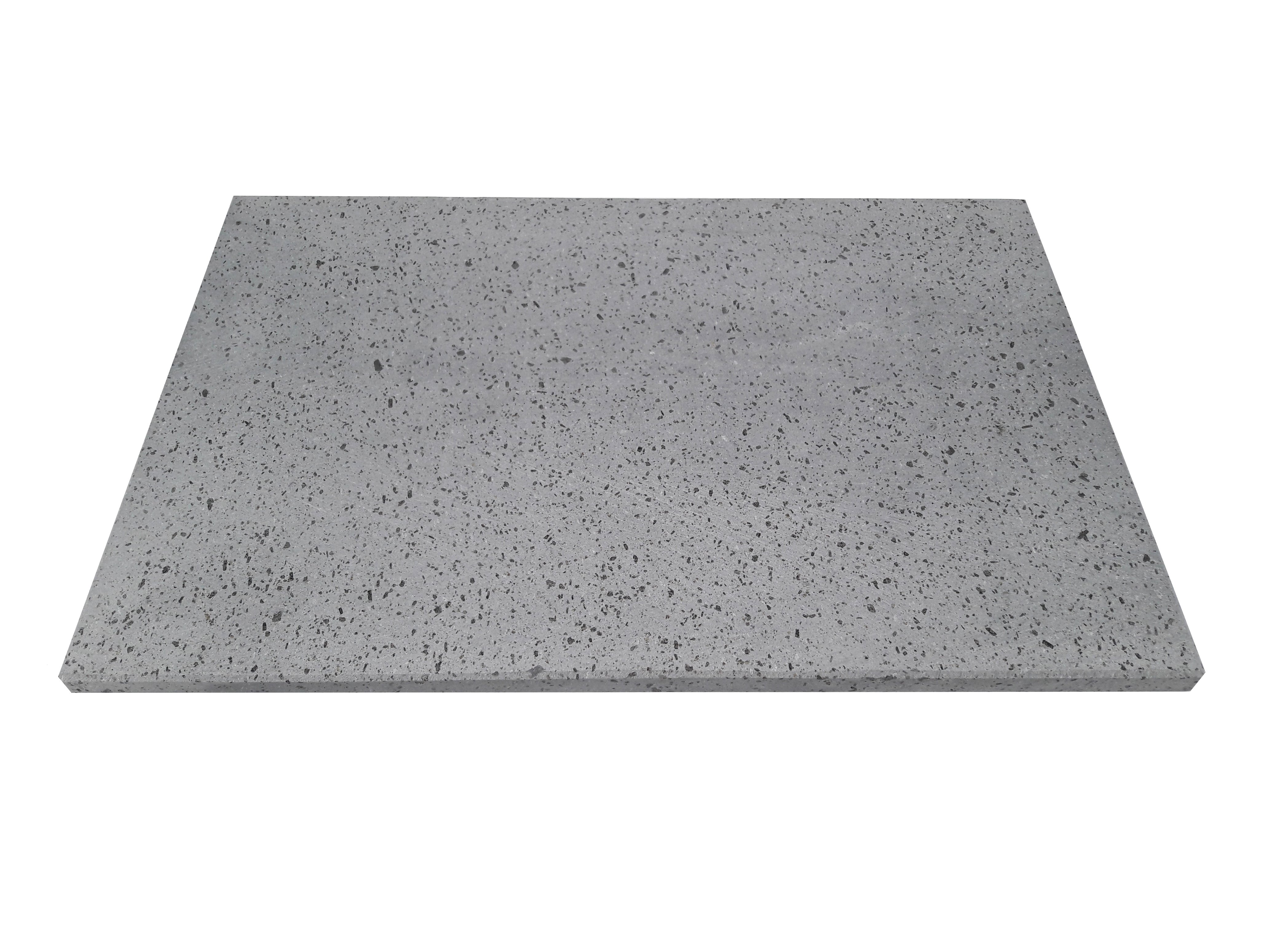 Pietra vulcanica ad uso alimentare dello spessore di 2 cm. Bisellata sui lati con scanalatura 'raccogli grassi'.